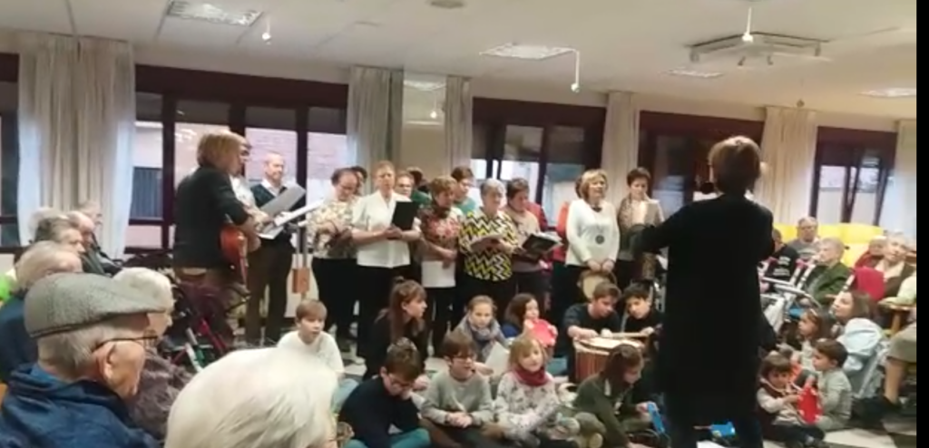 Además del coro, vinieron muchos niños que acompañaron los villancicos tocando la guitarra y las panderetas