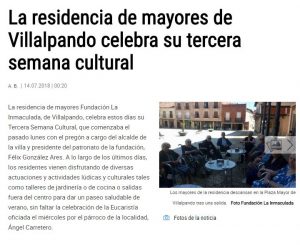 Toda la provincia de Zamora se ha enterado de la celebración de nuestra Semana Cultural y prueba de ello es que La Opinión de Zamora, se ha hecho eco  de las actividades que venimos celebrando durante estos días en la residencia.