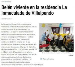Hoy, el periódico provincial La Opinión de Zamora, publica un artículo sobre el programa de actividades que llevaremos a cabo durante estos días de fiestas en la residencia