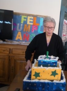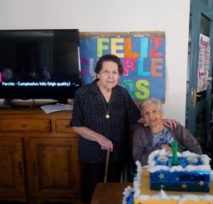 De nuevo, como cada mes, celebramos los cumpleaños con una fiesta y una merendola de patatas, aceitunas, galletitas… Este mes, han sido cuatro las cumpleañeras.