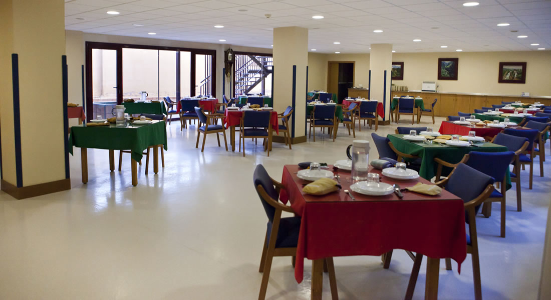 Disponemos de un gran comedor, amplio y luminoso, con cómodos asientos. Los menús, variados y de calidad (varios diferentes cada día) son elaborados adecuadamente para cada tipo de residente y preparados y servidos por expertas cocineras, pacientes y amables.