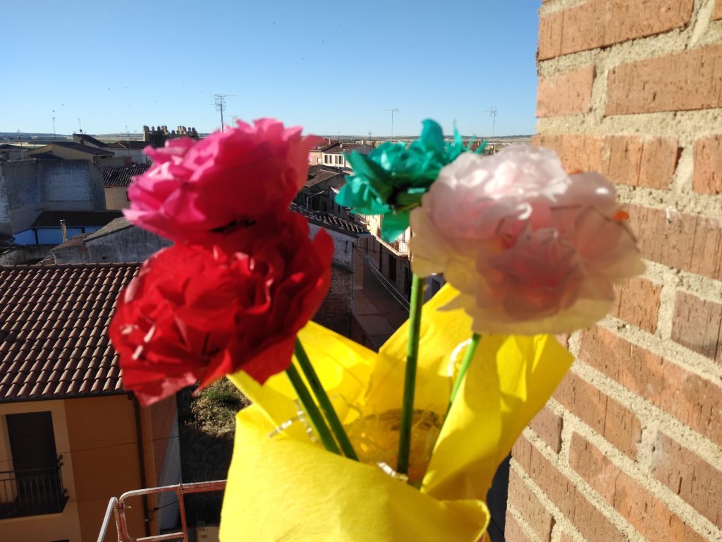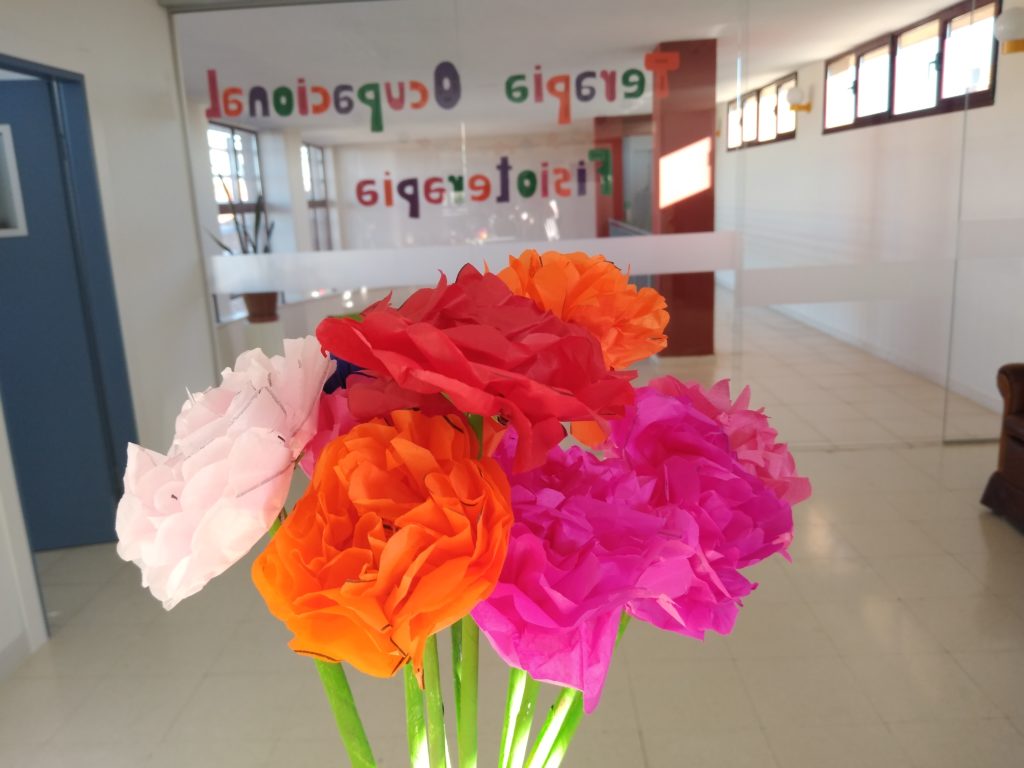 En la residencia hemos querido celebrar la llegada del mes de Mayo, realizando en el taller de laborterapia unas flores con papel de seda.
