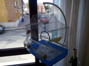 Hoy, le ha tocado a Angelita la limpieza de la jaula y Bienvenido se ha pasado toda la mañana cantando