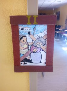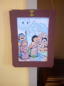Este año, hemos realizado cuadros con cada una de las 14 estaciones, , cada una de las cuales se fija en un paso o episodio de la Pasión del Señor.